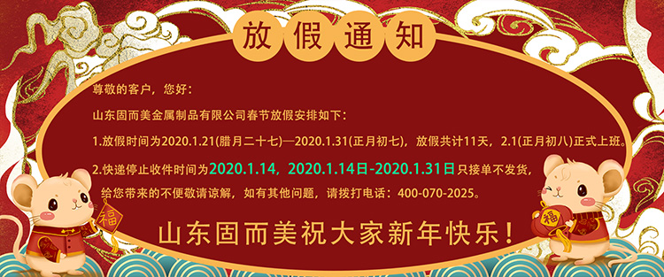 山東固而美金屬制品有限公司春節放假安排如下: