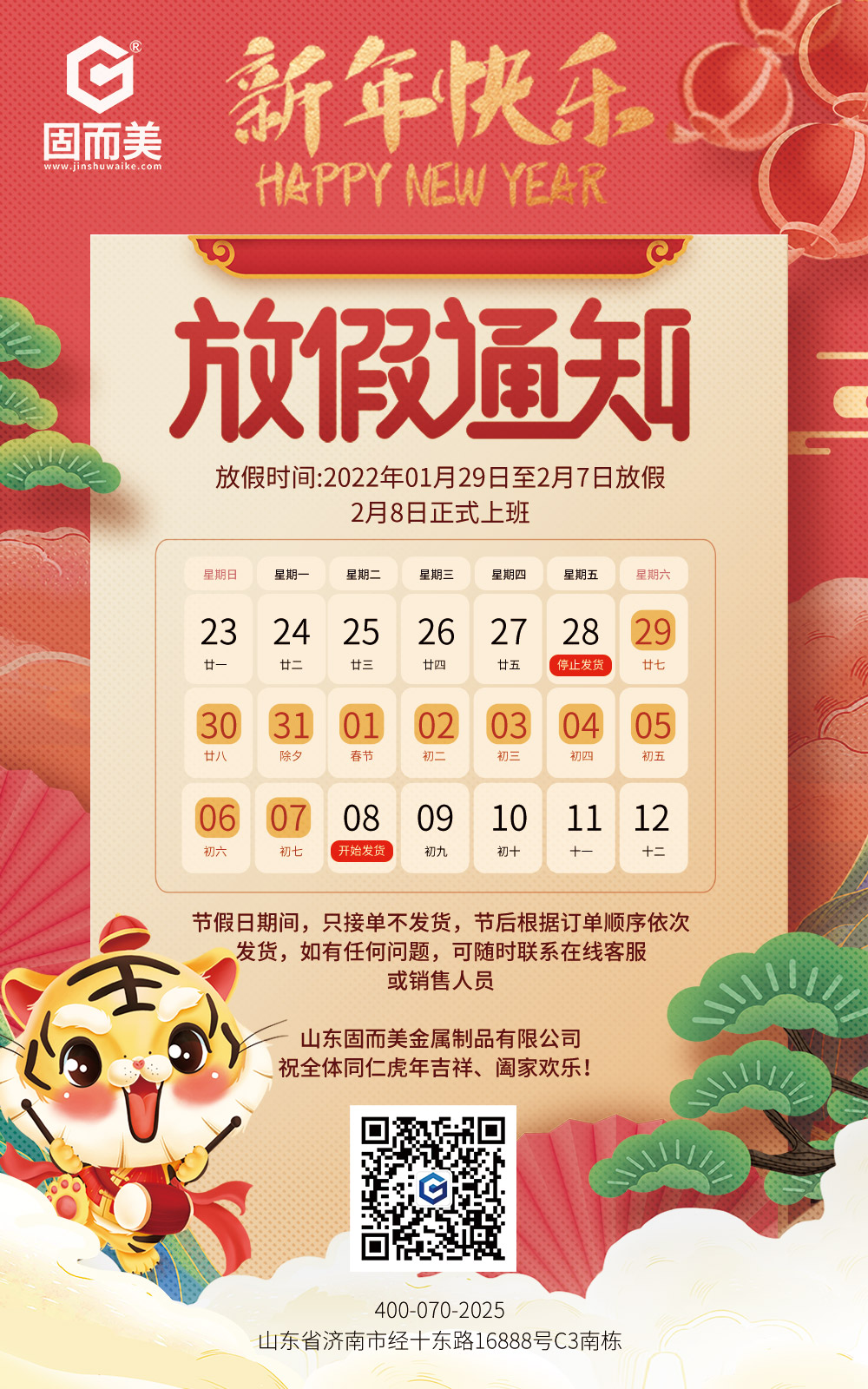 固而美祝大家新年快樂,身體健康,闔家團圓,虎年大吉!